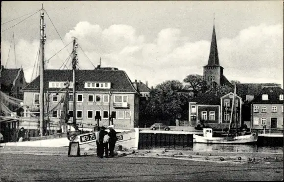 Ansichtskarte, Postkarte, Hafen, Schiffe, Boote, Dampfer, Boot