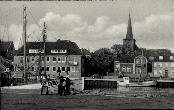 Ansichtskarte, Postkarte, Hafen, Schiffe, Boote, Dampfer, Boot