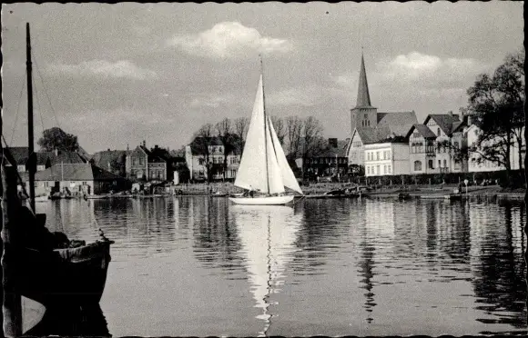 Ak Neustadt in Holstein, Hafen, Segelboot, Kirche