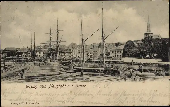 Ak Neustadt in Holstein, Hafen, Segelschiffe