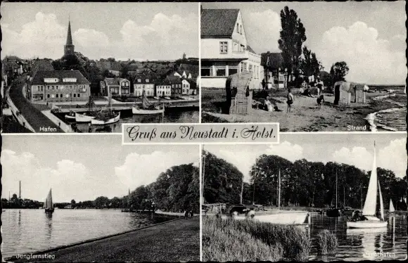 Ak Neustadt in Holstein, Hafen, Strand, Jungfernstieg