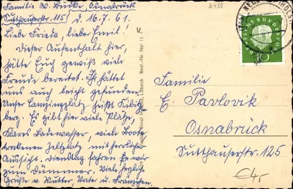 Zustand, siehe Scan, gelaufen, 1961 - ca 14 cm X 9 cm
