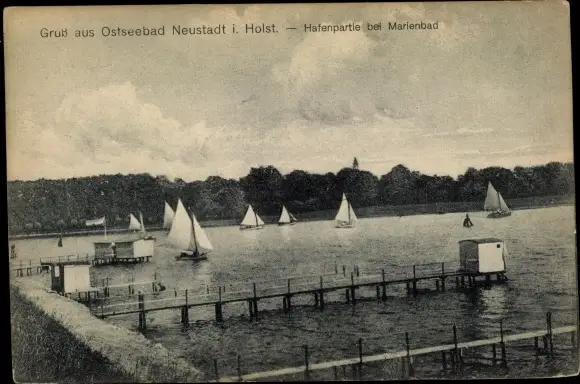Ak Neustadt in Holstein, Hafenpartie bei Marienbad, Segelboote, Stege