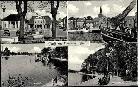 Ak Neustadt in Holstein, Markt, Hafen, Fischerboot, Jungfernstieg