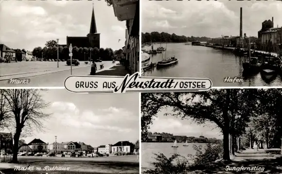 Ak Neustadt in Holstein, Markt, Hafen, Rathaus, Jungfernstieg