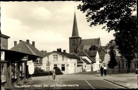 Ak Neustadt in Holstein, Partie bei der Friedenseiche, Kirche