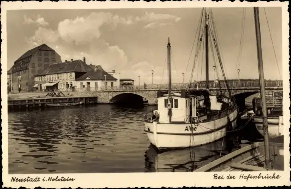 Ak Neustadt in Holstein, Partie bei der Hafenbrücke, Kutter Aline