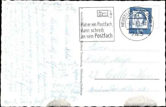 Zustand, siehe Scan, gelaufen, 1963 - ca 14 cm X 9 cm