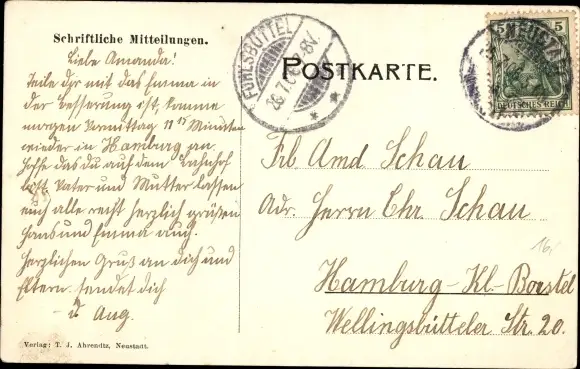 Zustand, siehe Scan, gelaufen, 1906 - ca 14 cm X 9 cm