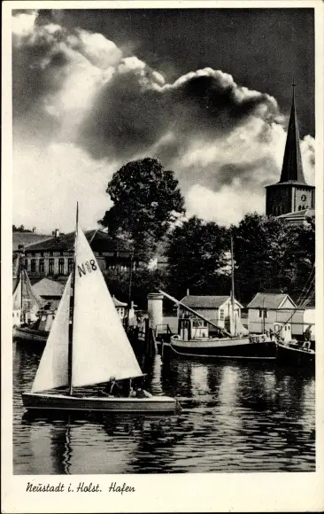 Ak Neustadt in Holstein, Segelboot im Hafen