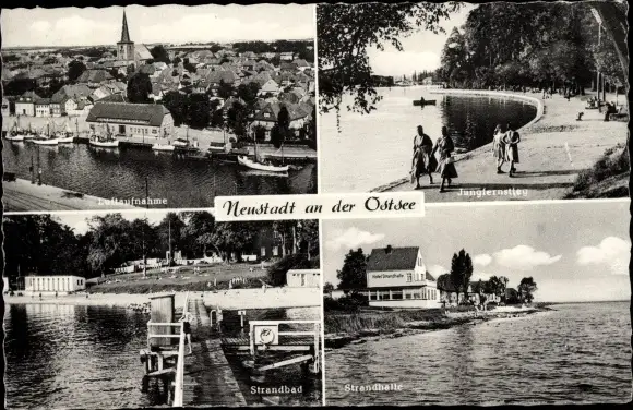 Ak Neustadt in Holstein, Strandbad, Strandhalle, Jungfernstieg