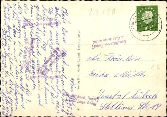 Ansichtskarte, Postkarte, Hafen, Schiffe, Boote, Dampfer, Boot
