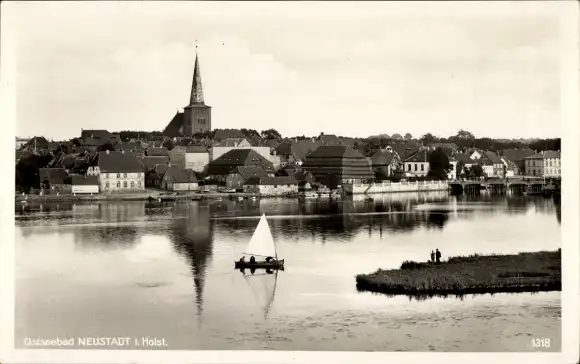 Ak Neustadt in Holstein, Teilansicht, Segelboot