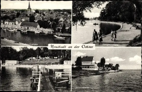 Ak Neustadt in Holstein, Teilansicht, Strandbad, Strandhalle, Jungfernstieg