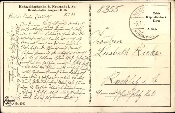 Ak Neustadt in Sachsen, Hohwaldschänke