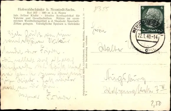 Ak Neustadt in Sachsen, Hohwaldschänke