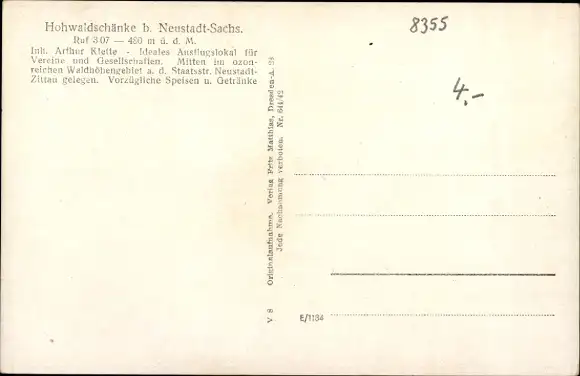 Ak Neustadt in Sachsen, Hohwaldschänke
