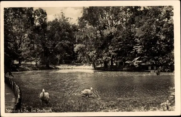 Ak Neustadt in Sachsen, Stadtpark, Teich, Schwäne