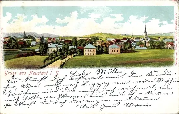 Ak Neustadt in Sachsen, Totalansicht der Ortschaft, Kirche, Straße
