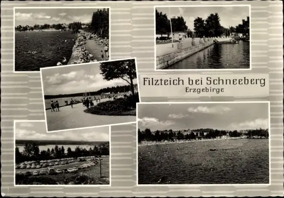 Ak Neustädtel Schneeberg im Erzgebirge, Bergsee Filzteich, Ufer, Parkplatz, Boote