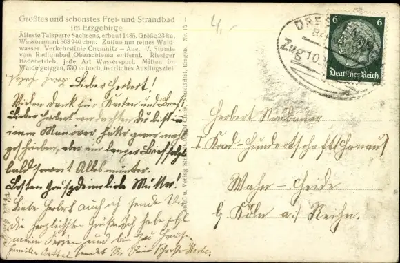 Ansichtskarte, Postkarte, Badeanstalt, Schwimmbad, Freibad, Strandbad, Volksbad