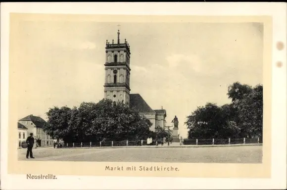 Ak Neustrelitz in Mecklenburg, Markt, Stadtkirche