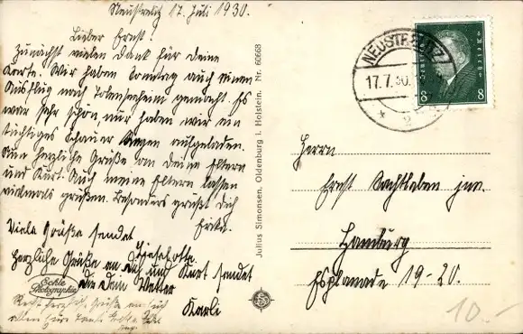 Zustand siehe Scan, gelaufen, 1930 - ca 14 cm X 9 cm