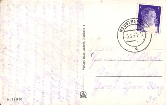 Zustand, siehe Scan, gelaufen, 1943 - ca 14 cm X 9 cm