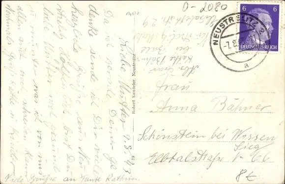 Zustand, siehe Scan, gelaufen, 1943 - ca 14 cm X 9 cm