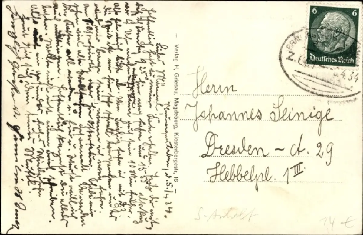 Zustand, siehe Scan, gelaufen, 1934 - ca 14 cm X 9 cm