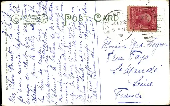 Zustand, siehe Scan, gelaufen, 1908 - ca 14 cm X 9 cm