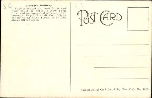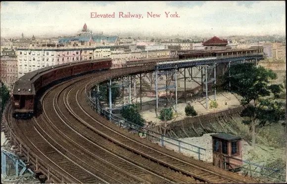 Ak New York City USA, Elevated Railroad Curve at 110th Street