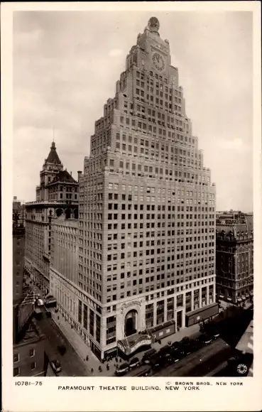 Ak New York City USA, Paramount Theatre Buildung, Straßenpartie, Autos
