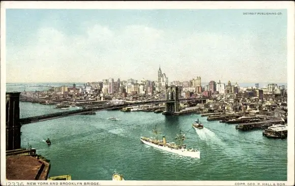 Ak New York City USA, Skyline mit Brooklyn Bridge