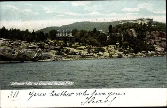 Ak New York USA, Buttermilk Falls und Cranstons, Hudson River