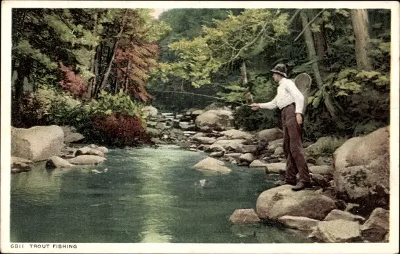 Ak New York USA, Forellenangeln
