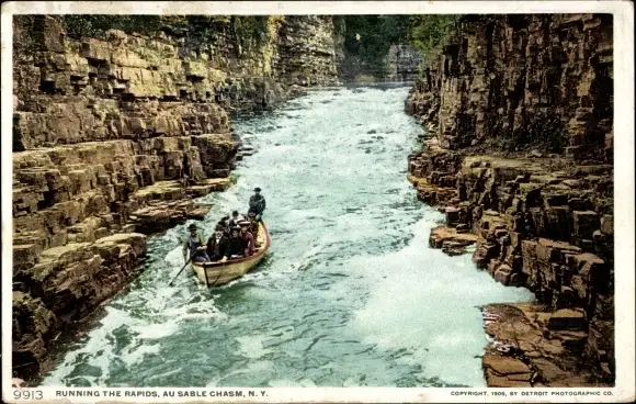 Ak New York USA, die Stromschnellen laufen, Ausable Chasm