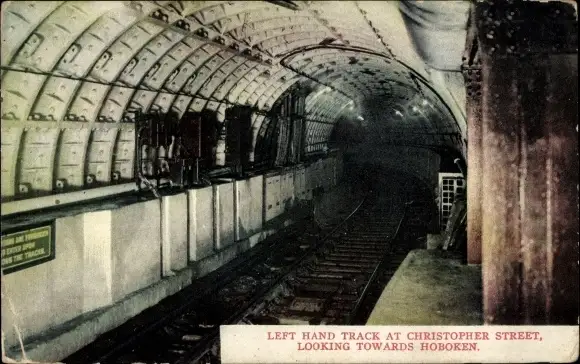 Ak New York USA, linker Gleis an der Christopher Street, Blick in Richtung Hoboken