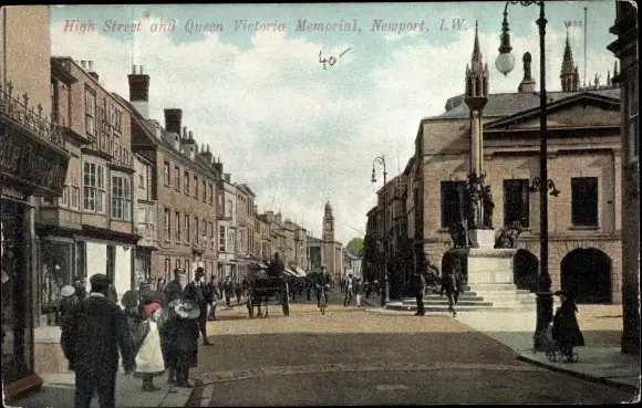 Ak Newport Isle of Wight England, High Street and Queen Victoria Memorial