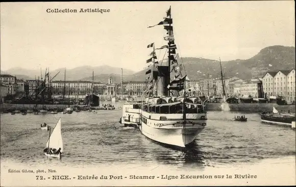 Ak Nice Nizza Alpes Maritimes, Entree du Port, Steamer, Ligne Excursion sur la Riviere