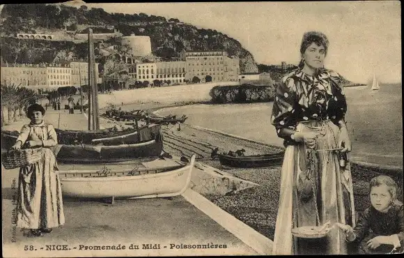 Ak Nice Nizza Alpes Maritimes, Promenade du Midi, Poissonières, Schiffe, Panorama