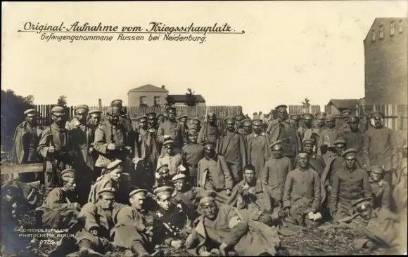 Ansichtskarte, Postkarte, Kriegsgefangene, Gefangenenlager, Gefangene, Neidenburg, Nidzica