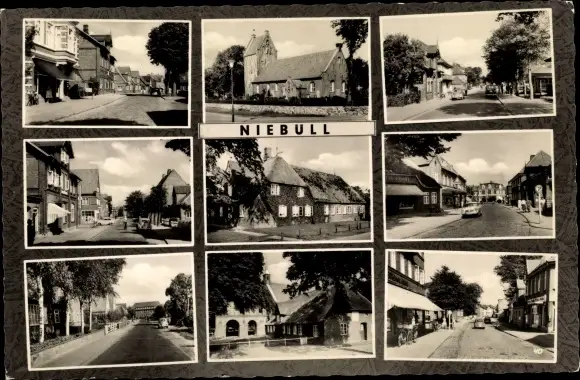Ak Niebüll in Nordfriesland, Kirche, Straßenpartie, Geschäfte, Friesenhäuser