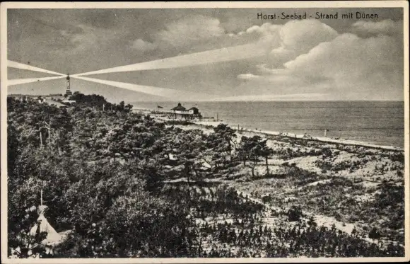 Ak Niechorze Seebad Horst Pommern, Strand, Dünen, Leuchtturm