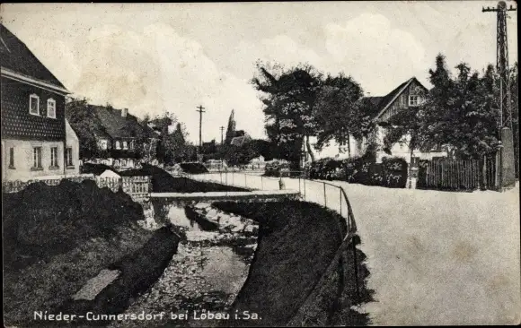 Ak Nieder Cunnersdorf Löbau in Sachsen, Straßenpartie