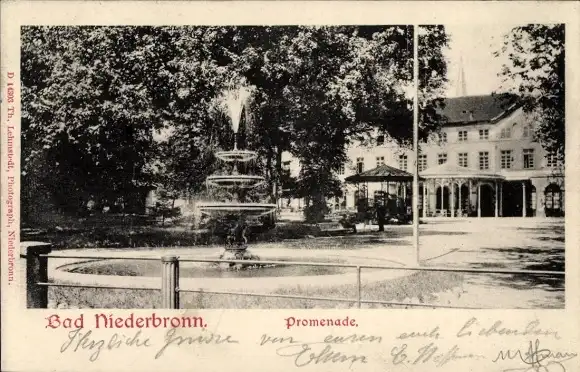 Ak Niederbronn les Bains Bad Niederbronn Elsass Bas Rhin, Promenade, Springbrunnen