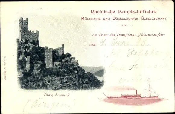 Ak Niederheimbach am Rhein, Burg Sooneck, Rheindampfer Hohenstaufen