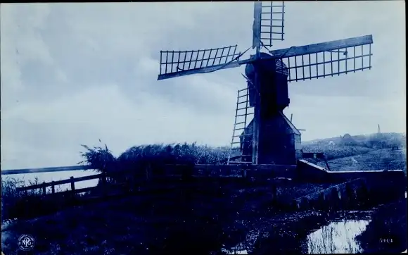 Ak Niederländische Windmühle, Uferpartie, Delft Holland, NPG
