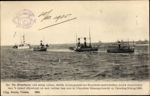 Ak Niederländisches Kriegsschiff, Hr.Ms. Evertsen, Schlepper, 1905