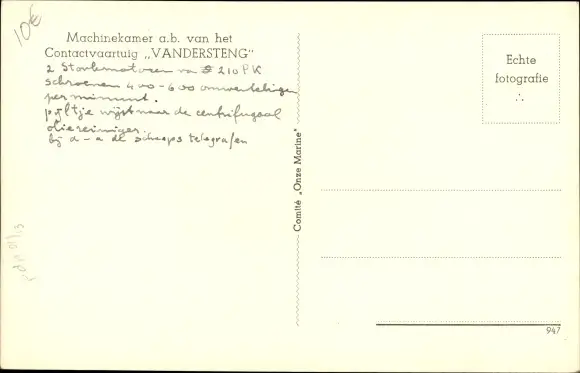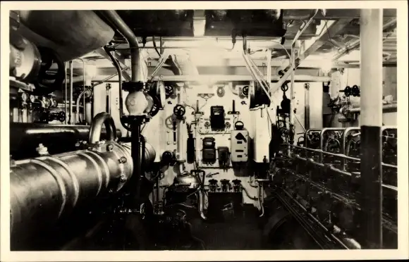 Ak Niederländisches Kriegsschiff, Vandersteng, Küstenschutzschiff, Maschinenraum